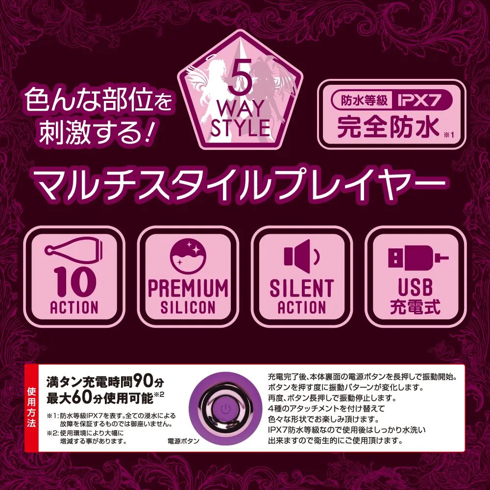 DuaLady 最新作品,男女通用的多功能按摩器! ① 可享受5种不同刺激的多功能按摩器! ② 可随意替换附件,满足不同部位需要! ③ 10种模式大功率震动高性能多频刺激! ④ 静音设计,优质硅胶制成,触感柔软! Dua Lady 最新创意作品,可随意享受5种不同刺激的多功能五合一“5 WAY”按摩器。本体是具有10种模式的大功率震动按摩器,也可为刺激您身体各个部位分别换上不同的附件玩乐。无论是乳头、龟头、阴蒂、肛门还是阴茎,都有相应的附件可以随意安装切换,玩法多多有待您的开发。无论是自己玩,情侣之间前戏调情玩都十分合适,就算不用附件本体也能进行精确刺激。完全防水的硅胶产品,质感舒适,方便清洁打理。贴心的静音设计,保护您的隐私避免尴尬更放心的玩!使用USB充电方便节省。捏住乳头、插入肛门,舔动和包裹龟头、插入阴道刺激G点!这么多种玩法可以同时实现,这样一款实用的按摩器值得您的拥有! ■ 包装尺寸(mm):H200 × W170 × D46
