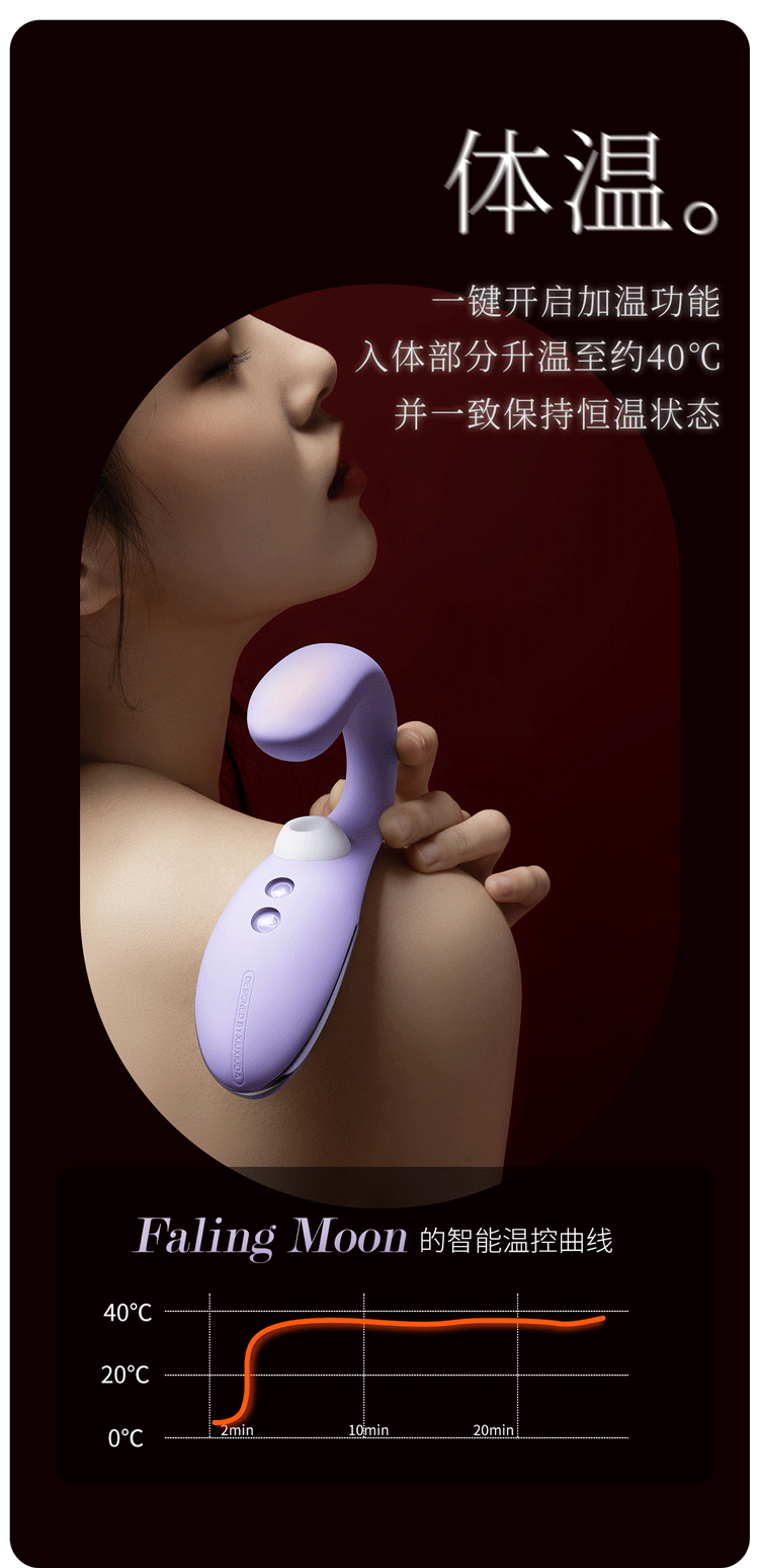 内外“同潮”,汹涌快意,专注亚洲女性的美好情趣体验。 ① 声波吮吸C点,棒身震颤G点,双重愉悦。 ② 10种吮吸震动模式,同时开启多种玩法。 ③ 软糯舒适硅胶包裹棒身,棒身智能恒温可加热。 ④ 低噪音,IPX7等级防水,磁吸充电。 羞羞哒—年轻人的健康情趣生活,取悦自己,并不「羞羞」。原创设计,祝您冲破束缚,愈加勇敢!愿您「自信且从容」,「独立且自由」。 落月 Faling Moon系列;是羞羞哒旗下又一力作,发售后广受好评,分别提供「珊瑚粉」,「木槿紫」2种颜色供您挑选。产品拥有吸吮、强振、加温、防水等功能,可同时按摩刺激女性内外两个敏感点,包括10种吮吸震动玩法,IPX7等级完全防水您可以放心冲洗,尽情玩乐!