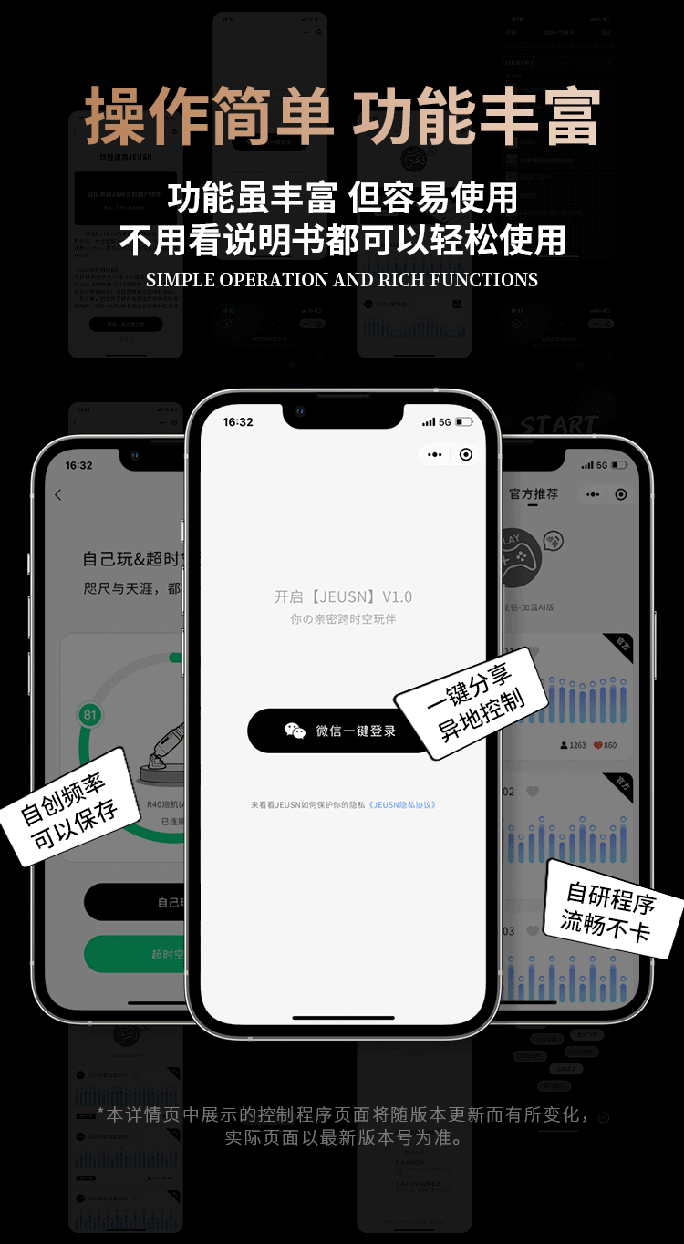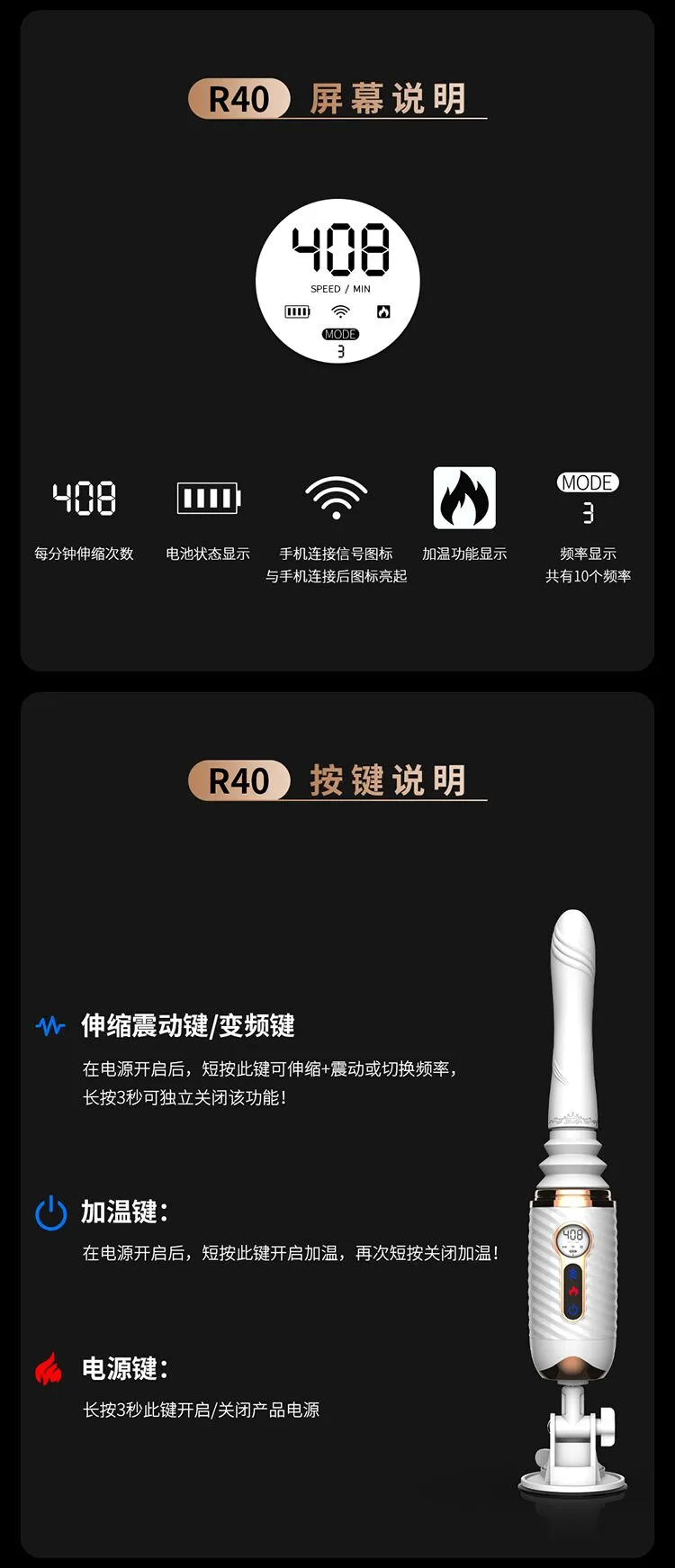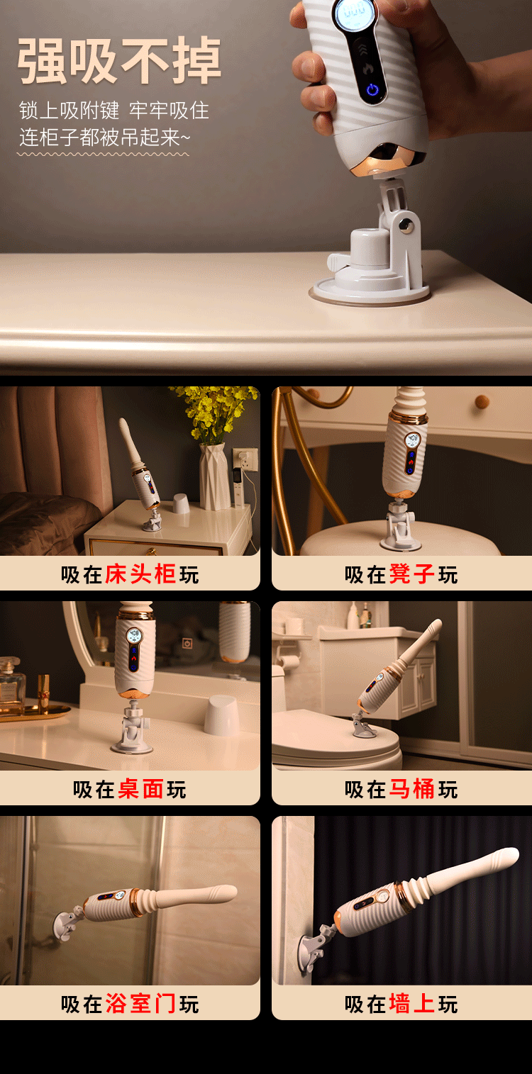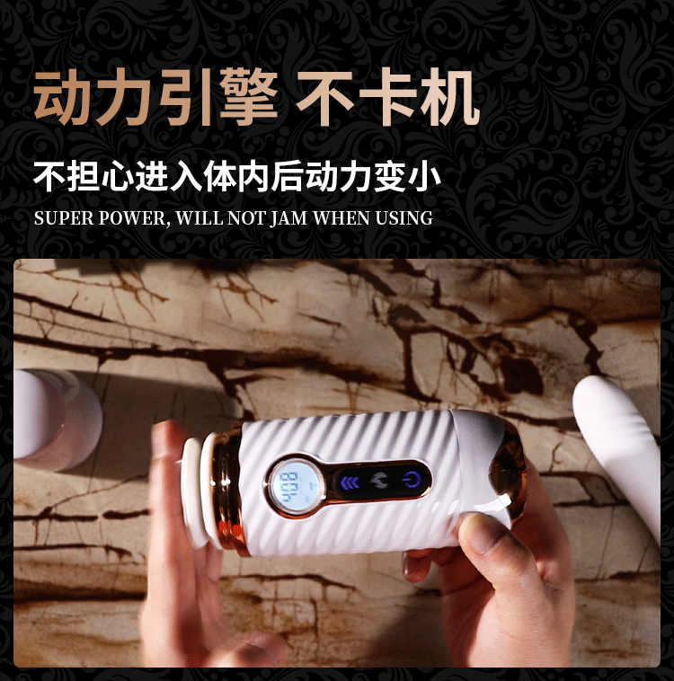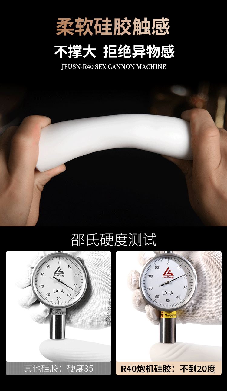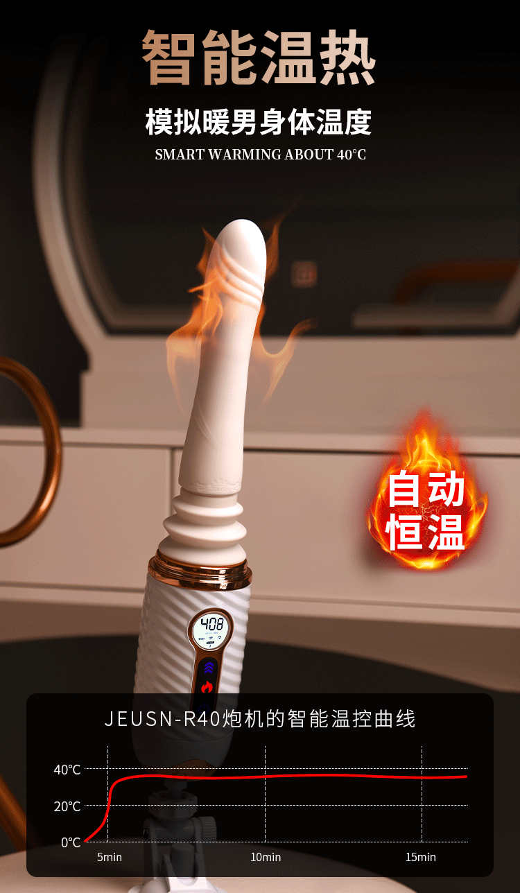 更好的进口材质、更舒适、更柔软!比女人更懂女人的阳具! ① 每分钟408次的全自动高速伸缩刺激G点! ② 动力引擎强劲入体后不卡机,震感穿透! ③ 高科技感液晶显示,功能信息一目了然! ④ 自动恒温,智能温热模拟暖男身体温度! ⑤ 手机关联,异地控制,操作简单,功能丰富! ⑥ 手指触屏滑动调节速度,10频酥麻任意调节! ⑦ 多角度免提吸盘,满足前后左右各个姿势角度! JEUSN [久兴] — 懂您的两性原创情趣生活品牌,「JEUSN 阳具」系列全面登场本店!现今隆重推出名气产品「 R40 无线遥控便携式性爱炮机」,欢迎您的选购。最新升级后的便携式性爱机器人 – R40 炮机动力比肩传统大型炮机,具有10个动力频率可选,每分钟可高达408次的伸缩抽查。先进的动力引擎提供持续稳定的动力输出不会卡机,不必担心进入体内后动力会变小。升级后的震感模组能深层穿透神经引动G点高潮。自研微信小程序无需下载,支持手机互联分享控制,自己玩、双人玩多种玩法任您选择。异地控制,流畅不卡,可以同时进行语音或视频,互动更有趣,异地感情升温,彷佛就在他/她身边!官方精选10种酥麻频率可随意切换,小程序中可自由滑动快速切换调节速度,操作简单,功能丰富。科技感十足的液晶显示能清晰展示当前频率、速度、电量、加温。采用进口材料,柔软硅胶触感,不撑大无异物感。配有智能温热功能,模拟暖男身体温度自动恒温。底部吸盘吸力超强,锁上吸附键后能牢牢吸住,可在床头、桌子上和浴室墙上随便吸,发挥创意哪里都可以是战场!吸盘多角度可调前后左右各个姿势都能满足。虽然本品冲击力强,但是采用低噪音私密设计,相对于传统炮机更加的低噪,让您在寂寞深夜使用时在房间外也听不到。本品附赠收纳袋,轻松私密匿藏保持卫生,更可放入包包中出差旅游随时使用玩乐。使用后容易清洗生活防水,可在水龙头下冲洗。USB 磁吸充电,比传统针式充电口更耐用。 ■ 包装尺寸(mm):H320 × W180 × D90