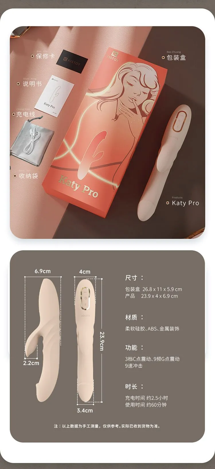 KISTOY KATY系列柔软震动棒,柔式冲击触碰CG两点带给您爱的双重体验,女性糕潮愉悦的 「设计师」!! ① 震感如电流般酥麻,可轻柔可猛烈,随心的感觉触发更深的欲望,迷离间被填满,快感一浪胜一浪,撩动引爆G点糕潮! ② 九档G点冲击模式,lv 1时柔情点水,lv 3含珠待放,lv 6 排山倒海,lv 9 汹涌澎湃! ③ 享受G点连绵不断刺激的同时,KATY PRO也不放过您的C点:三档高频率弧形贴合给您带来里外CG潮感双重来袭! ④ 颜值不同,快乐也不同,眼睛看到的,心里所想的,都舒服美妙。 色色情趣用品商城为了造福在北美的小仙女们而引进的国内网红品牌:KISTOY!专注于研发各种不同口径、不同深度的吸吮震动愉悦产品,力求为各种敏感体质的女性带来真实而别致的糕潮体验,让女性能解放天性,释放自己,更自信,更爱自己!!北美最受欢迎的高品质颜值KISTOY KATY系列柔软震动棒,通过多项检测,质量保证,无论是单独享受或是情侣互动,都可放心使用。外层硅胶和强力马达,舒适感和震感无与伦比!按摩棒界的王者!