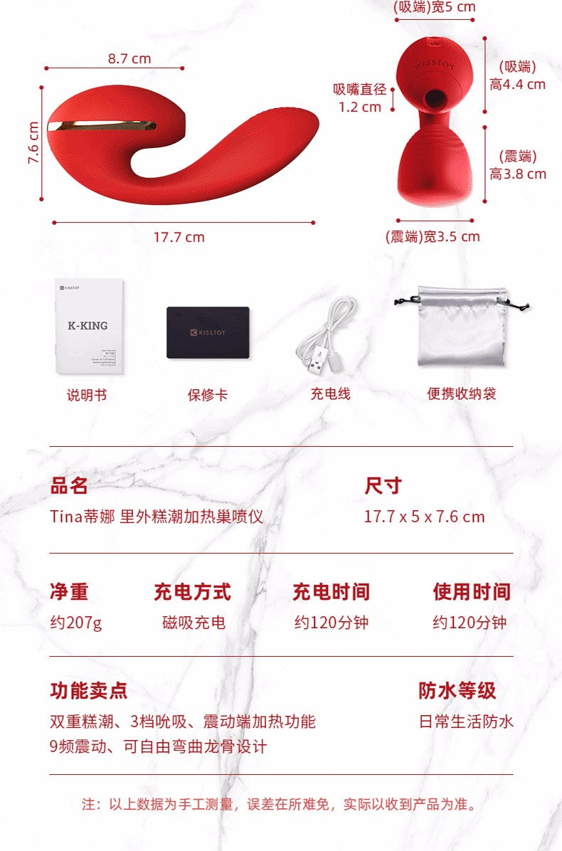 KISTOY Tina里外高潮加温潮喷仪,结合内外加温与潮喷功能,带来极致的快感体验。此款潮喷仪适合成人爱好者,提升性福感。立即在北美色色情趣商城(www.nysese.com)购买,快速配送。