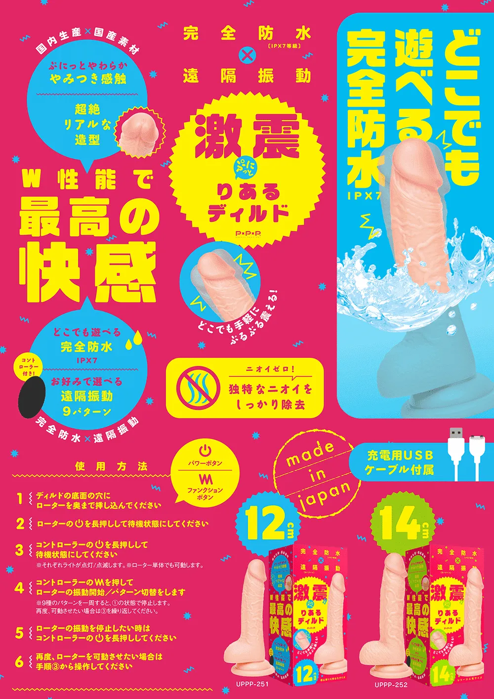 使用遥控器就可以操控振动的超逼真阳具电动按摩棒,产品带有吸盘而且完全防水! ① 可拆卸的转子和吸盘假阳具套装,解锁更多玩法! ② USB磁吸充电,9种震动模式、10米远程操作! ③ 日本生产,完全防水、可以在浴缸中使用! 可以遥控操作!完全防水!的日本国内生产×日本国产材料的假阳具登场!!任何人都可以放心使用,每一个都经过精心制作。Q弹柔软而令人上瘾的感觉×超逼真的颜色和造型,打造讲究。9种振动模式。通过遥控可扩大玩乐范围,完全防水,即使在洗澡时也可使用。棒的部分长度为122mm。前端的最大直径为35mm。也推荐给假阳具新手和肛交新手使用。【附属品】遥控器/磁吸式USB充电线 审查编号:2105015 ■ 包装尺寸(mm):高185 x 长85 x 宽66