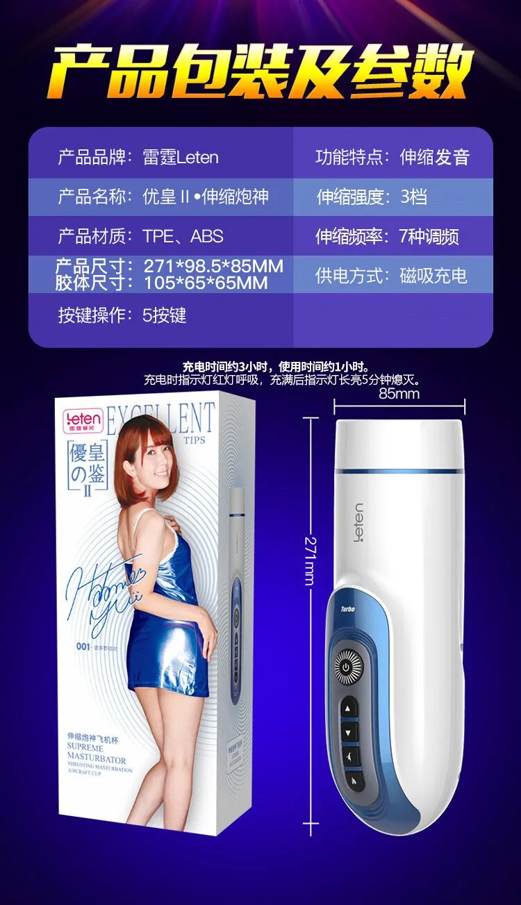 录制波动真人声音。产品整条密穴翻滚着热度,39°智能恒温波多体温,让你夜夜都能火热缠绵! 波多野结衣签约代言商品 真实现场原声录制,360°环绕智能加温,TPE材质Q弹柔软虚拟肤质 380次/分钟,30种发声,三段档位,七种调频,十种体位,自动伸缩 Leten亲赴日本与波多野结衣签约代言,测试波多臀部数据,录制波动真人声音。产品整条密穴翻滚着热度,39°智能恒温波多体温,让你夜夜都能火热缠绵。全自动炮击380次/分,立与跨上,你只管躺着不用动,就能享受一发冲天的快感!!! -商品规格- 尺寸:271 ×99 ×85 mm 材料:TPE, ABS 按键:5按键 功能:伸缩叫床 供电:磁吸充电 重量:1000g 优皇の鉴 II – 波多野结衣 | 自动伸缩炮神飞机杯