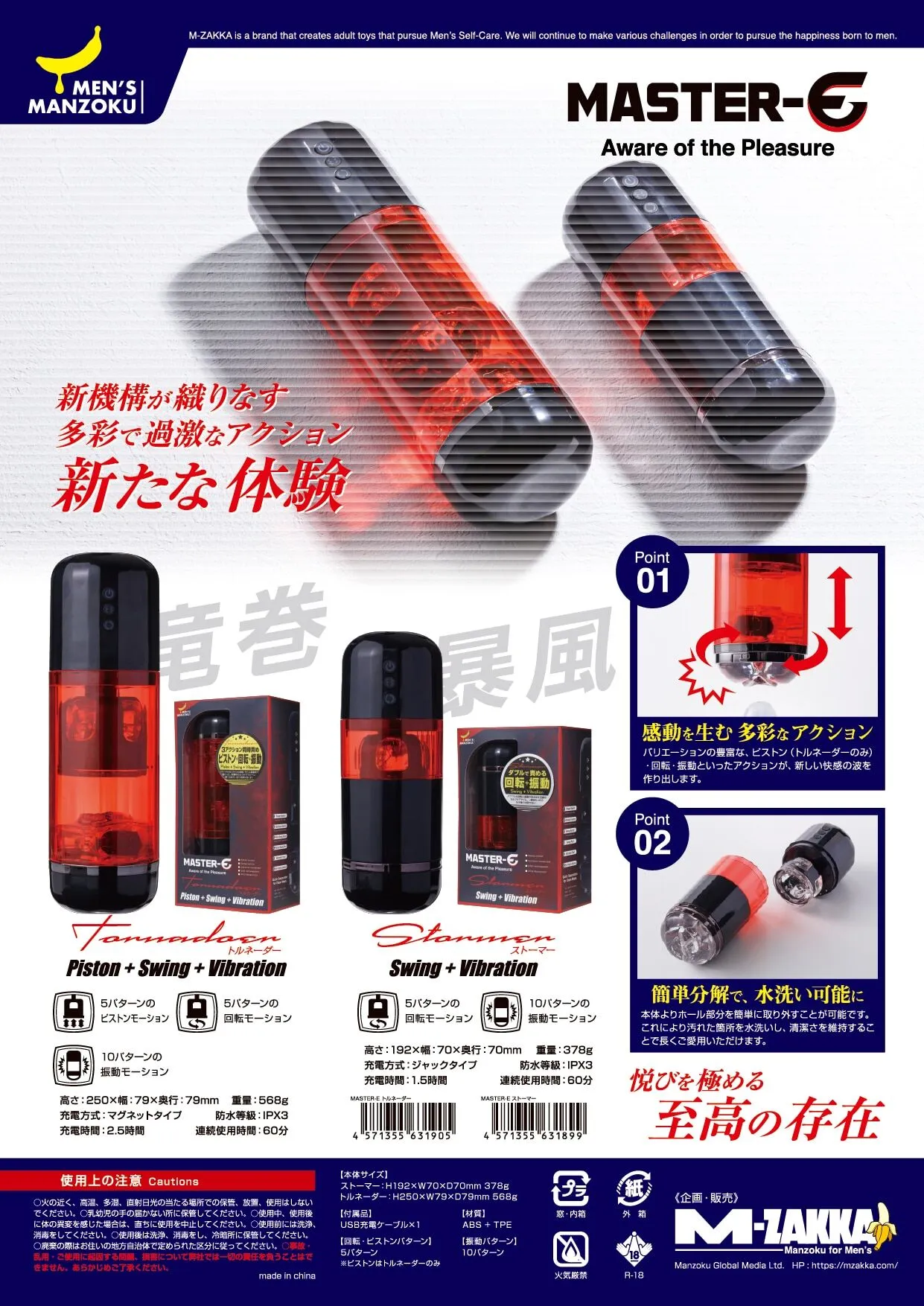 独立双重刺激实现插入透明蜜唇后同时旋转按摩龟头和振动按摩阴茎的究极绝伦口技! ① 通过同时旋转和振动刺激,创造绝无仅有美妙快感的口交名器。 ② 旋转部分和振动部分分离,同时单独旋转刺激龟头和按摩阳具。 ③ 10种振动模式+5种旋转模式,日常生活防水且可快速拆卸清洗。 最新登场的新型电动口交型飞机杯,展现只有电动名器才能实现的舒适!追求男性福利,以全新舒适形式为目标的『Master-E』系列,展现前所未有的舒适感。这款Stormer是一款基于后端旋转和前端振动的电动口交杯。当您继续前进时,龟头将被牢牢固定在最里面的部分,在那里增加了水平轴的旋转,刺激波环绕您的整个龟头。名器由接近人体皮肤的弹性材料制成,使用感觉很棒。另外,由于名器和主体可以轻松分离,所以名器使用后可以非常方便的拆开清洗。使用方便的USB充电式,充电约1.5小时后可以使用60分钟。新的电动飞机杯结合了易用性、易用性和舒适性的护理。-Gadget Master-E Stormer。将这种开创性的「男人的乐趣」献给所有男人。 ■ 包装尺寸(mm):垂直 225 水平 145 深度 93