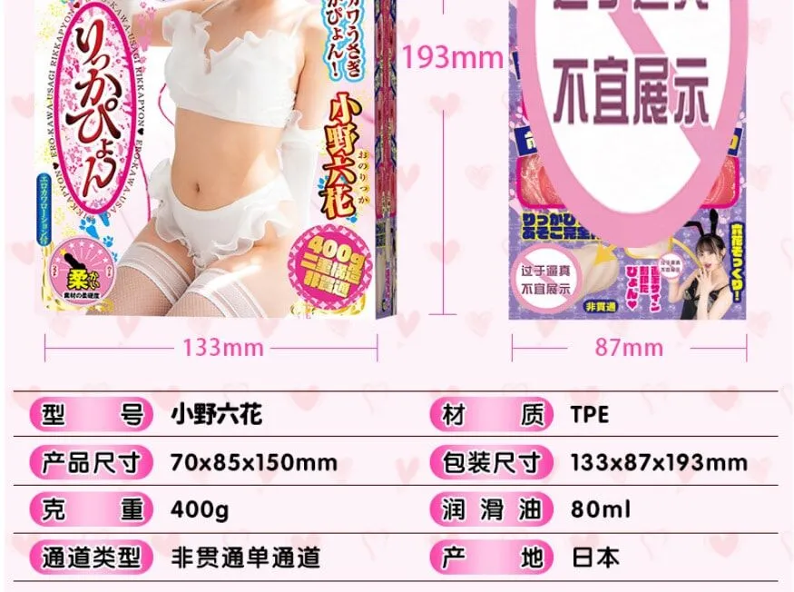 00后纯爱萌兔小野六花,带您进入她的真实秘密花园! ① 年轻逼真性感入口,感受紧致情趣体验。 ② 真实小野复杂蜜穴,三段压迫酥麻刺激。 ③ 内外双层拟肤材质,插入后体验更真实。 小野六花于 2020 年 5 月在 MOODYZ 首次亮相,凭可爱甜美的脸蛋和娇小而丰满的身材,人气急升。想到她仍然只有 19 岁,却已经拥有自己的女优名器,真是太疯狂了!NPG 可爱兔女郎小野六花女优名器是对这位风靡 AV 的美女的崇高的致敬。名器真实地倒模还原了小野六花的阴部外形,布满螺旋褶皱的阴道肉壁以及收紧子宫颈设计!这款情趣玩具附有亲笔签名,和 ero-kawa(性感又可爱)明星照片。名器内部是一条狭窄而密密麻麻的螺旋隧道,只能属于您专有! ■ 包装尺寸(mm):190×130×85