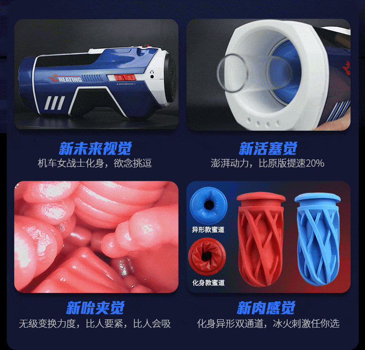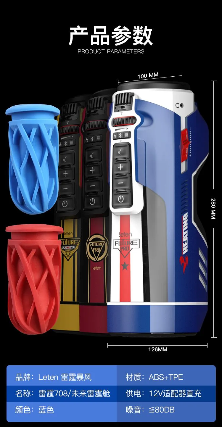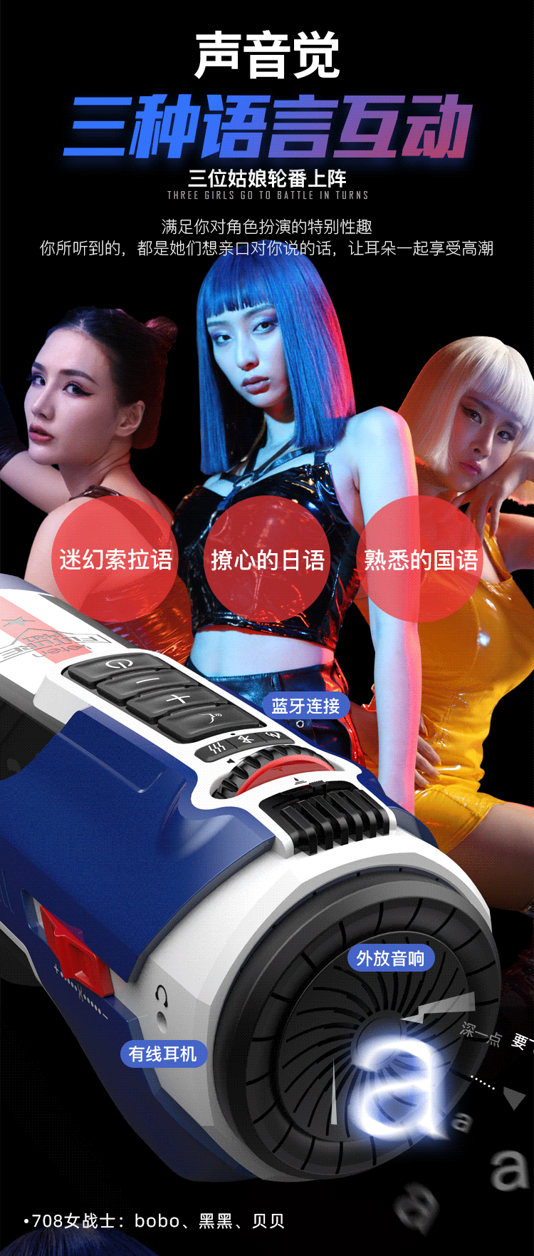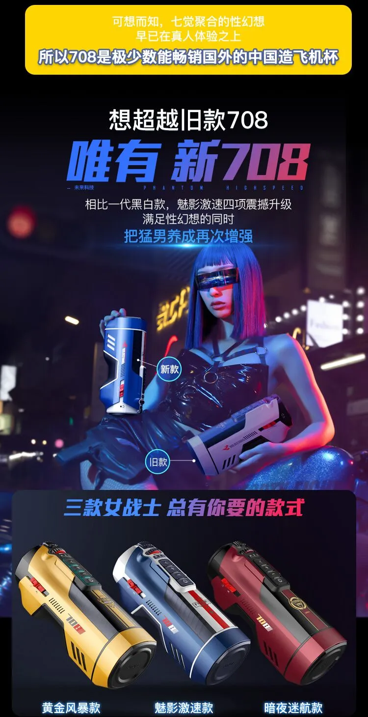 雷霆708是雷霆暴风品牌2020年出品的男性自慰器,产品造型炫酷有未来科技感融合了抽插,夹吸,加温,烘干,叫床等创新性的功能,甚至机体拥有能够模拟女性体香功能,可谓是从视觉,听觉,触觉,味觉全方位把男性娱乐产品提高到了一个新维度。并有十几项自主专利是目前最热销的高端男性产品! 《为爱而战》 微电影《为爱而战》微电影 | 色色情趣用品商城 × Space Capsule × 未来女友 × Future Sex 挥汗大战 ☝ 一触即发 ··· 《故事情节/前情提要》 来自2079年银河系人马座的索拉星球,是由高颜值女性组成的神秘文明。索拉星球遭到邪恶帝国的入侵,星球面临毁灭,所有女性面临被奴役的命运。危机时刻索拉星球的科学家们发现地球男性身体内隐藏的“神秘能源”是给女战士补充能量的关键。为了拯救文明,索拉女科学家们用特有科技制造了能源收集器——“未来性爱舱”,并派遣三位精选女战士;“暗夜迷航女神bobo”,“魅影激速御姐黑黑”与“黄金风暴萝莉贝贝”。分别秘密携带为她们量身定做的精液收集器跨越时空来到地球,收集“男性精液”用于解决星球女战士能源严重不足的现状,情况十分危急!唯有地球的勇士拔刀相助,才能助索拉星球度过难关… – 装备介绍/武器功能 –为了更好的收集能量,未来少女带来索拉星球黑科技的产物——未来性爱舱。它融入多达25项科幻级性爱装备,超越五种感官体验,唤醒身体七觉,通过肉感觉、呻吟觉、视觉、抽插觉、体香觉、体温觉和吮夹觉,让爱爱体验升级,让你的欲望七重感官爆发,达到愉乐境界。 魅影蓝装甲(升级定制款)、双飞轮激速活塞、升级无极空气加压收缩、708艾丽丝化身款通道/708幻想异形款通道、恒温加热、全自动烘干、三种语言发声、708女战士香水、肉感虚拟肤质; 无级变换舱压,轻触拔片10种吮吸自动夹,吮含收缩自由掌控,滑轨与气囊加压技术快慢松紧、任意体验不同松紧快感; 双重远离推动舱体高速活塞、同步夹吸加伸缩、360度环流式加温、暖流自动烘干、内置气流暖风系统自动烘干、12V直插直用; 中日索拉语三种语言交替发声、音量调节、外放音响、蓝牙连接; 708女战士体香香水可调节开关、虚拟肤质滑弹细腻致柔肌感; 武器箱内附赠配件;轻松可拆卸更换内核,深邃梦蓝异形款、奇绝艳红化身款,两款软肉任意撸。魅影激速女战士黑黑体味香水,体液润滑剂。 -装备规格-包装方式:手工盒 材质:ABS、TPU、PU、TPE、配件清单:外包装手工盒、黑卡盒*2、香水、电源适配器、质保卡、说明书、润滑液、软肉产品尺寸:126*100*280mm包装尺寸:320*210*115mm外箱尺寸:450*340*380mm红通道:口部直径:18.5mm 内胆长度:136.6mm 内胆深度:122.5mm蓝通道:口部直径:19.2mm 内胆长度140mm 内胆深度:122.5mm内胆重量:150g左右产品净重:2.3kg 装箱净重:14.34kg装箱毛重:15.57kg装箱数量:6PCS马达数量:2马达型号:390马达+395马达马达转速:390马达-12000rpm、395马达:13550RPM供电方式:AC 100-240V 模式:3+7运行噪音:≤80db使用人群:18岁以上人士防伪验证:外包装盒子上面有防伪标签,直接扫描二维码即可生产日期:见外包装※由于产品属于智能型产品,平时不经常使用的,请在三个月时间内充一次电,避免电池自耗电,以免电池老化。 – 保养维护 –1、请勿清洗杯体,禁止任何液体进入杯内,以免引起电器短路或损坏;2、杯体(杯壳)内外,只需用干抹布或者干纸巾擦拭即可;3、擦不到的地方,可以用吹风筒的冷风功能来吹走灰尘(注意不可用热风);4、若不慎有液体进入杯壳,须立即擦拭干净;5、取出内胆清洗后,必须要里外都擦干,才能放回机器里;6、清洗时请不要翻开内胆,请勿使用热水冲洗,避免造成内胆损坏;7、远离高温于污垢,请勿放置阳光直晒;8、使用完产品,请及时关机,避免长时间运作,导致机芯老化,影响寿命。 – 注意事项 –【警告】不遵守这些安全说明,可能会导致火灾、电击、受伤或损坏产品或其他财务,使用之前,请先阅读下面的所有安全性信息。1、本产品仅适合成年人使用,禁止未成年使用;2、使用中如有不适,请停止使用;3、须定期检查产品是否受损,发现受损请停止使用;4、产品符合适用的表面热度标准和限制。但是,即使处于这些限制内,长时间持续接触热表面也可能导致不适或受伤,如果您的身体出现影响身体感知热度能力的状况,请特别小心,对热不敏感的人使用时必须注意;5.使用前要检查电源适配器线,用损坏的线揽在潮湿的环境下使用会导致触电;在将适配器插入电源插座前,请确定交流插头完全插入电源适配器。